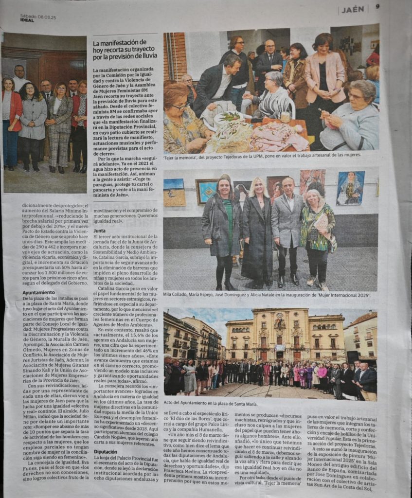 Del 7 al 31 de Marzo se realizó la muestra «Mujer Internacional 2025», en la que 40 Artistas Internacionales expusieron sus obras en la Antigua sede del Banco de España de la ciudad de Jaén; edificio proyectado por el ilustre Arquitecto Rafael Moneo en 1983. Siendo patrimonio histórico de Andalucía por su importancia Arquitectónica; actualmente funciona como sala de exposiciones, y es el archivo municipal de Jaén.